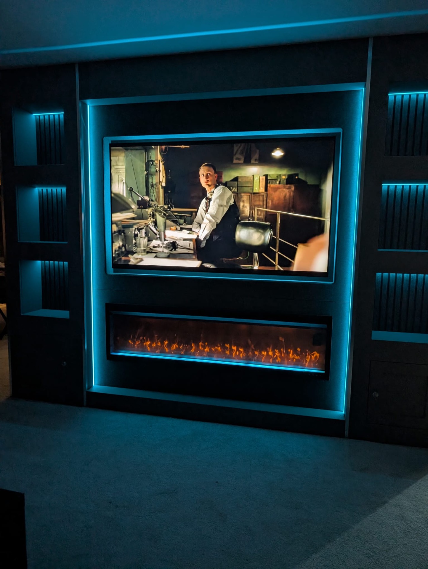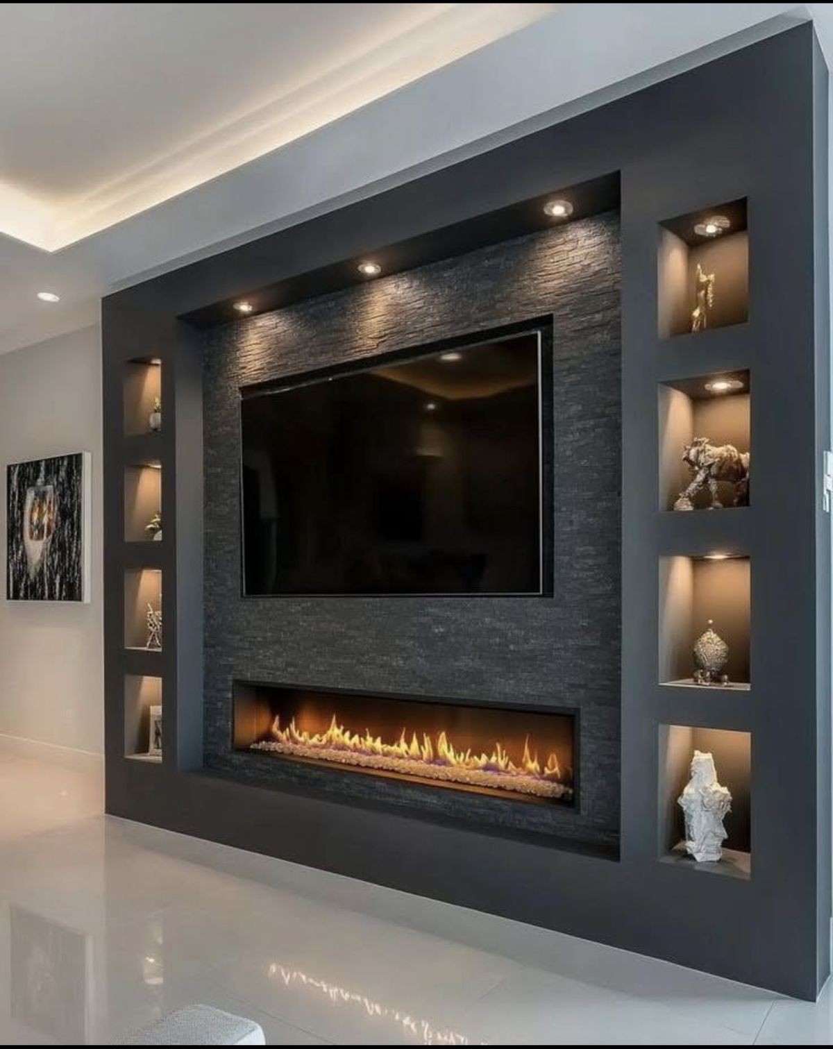 Each wall is designed as a striking focal point, tailored to your space and lifestyle. From recessed TVs, integrated fireplaces, and decorative niches to slat panels, textured inserts, and sculpted detailing, our media walls blend elegance with practicality.